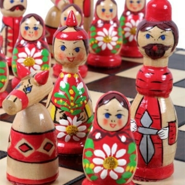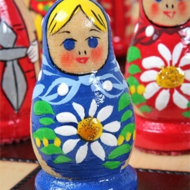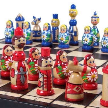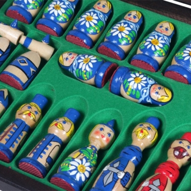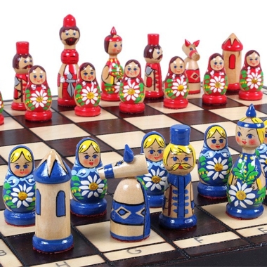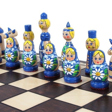 Schachspiel aus Holz für Kinder Babuschka Russische Puppen Blau