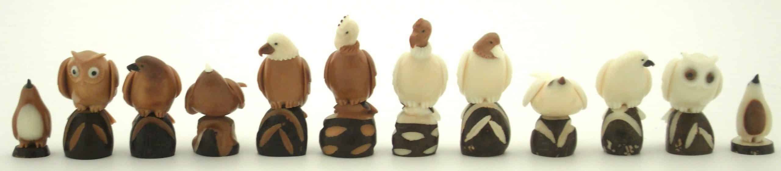 Ein seltenes Schachspiel-Set, das vollständig aus Pflanzenelfenbein im Vogeldesign gefertigt ist.