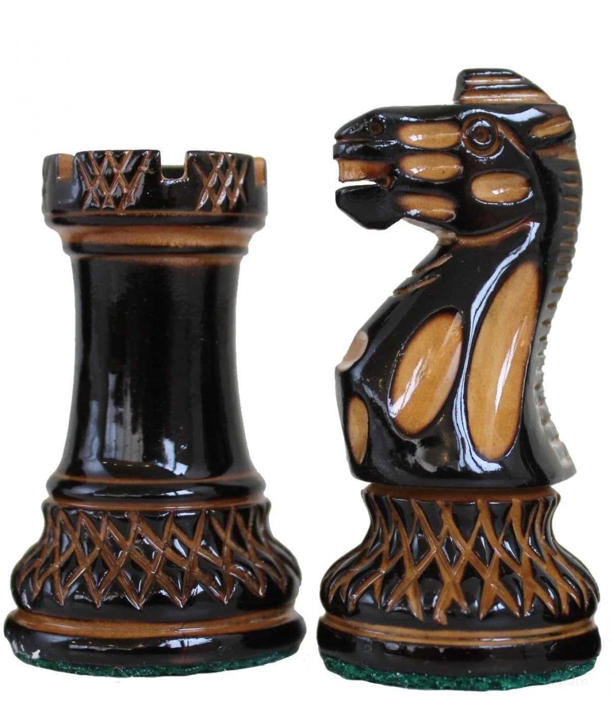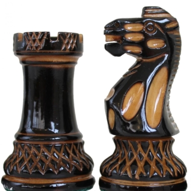 Die Schachfiguren aus zwei Farben sind aus Holz handgeschnitzt und haben eine schöne glänzende Oberfläche. Sie haben eine Könighöhe von 8 cm.