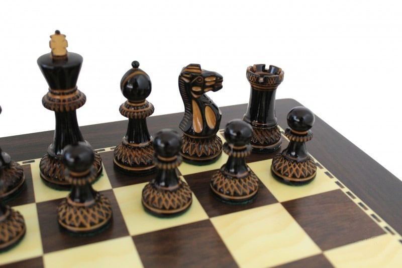 Ein Set von klassisch großen Holzschachspiel mit originellen Ausführungen.