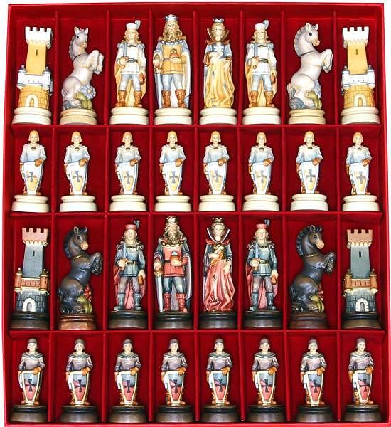 Ein Sammlerset von Schachfiguren, gefertigt von experten Künstlern aus den Kunstschulen von Ortisei und Selva Gardena.