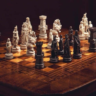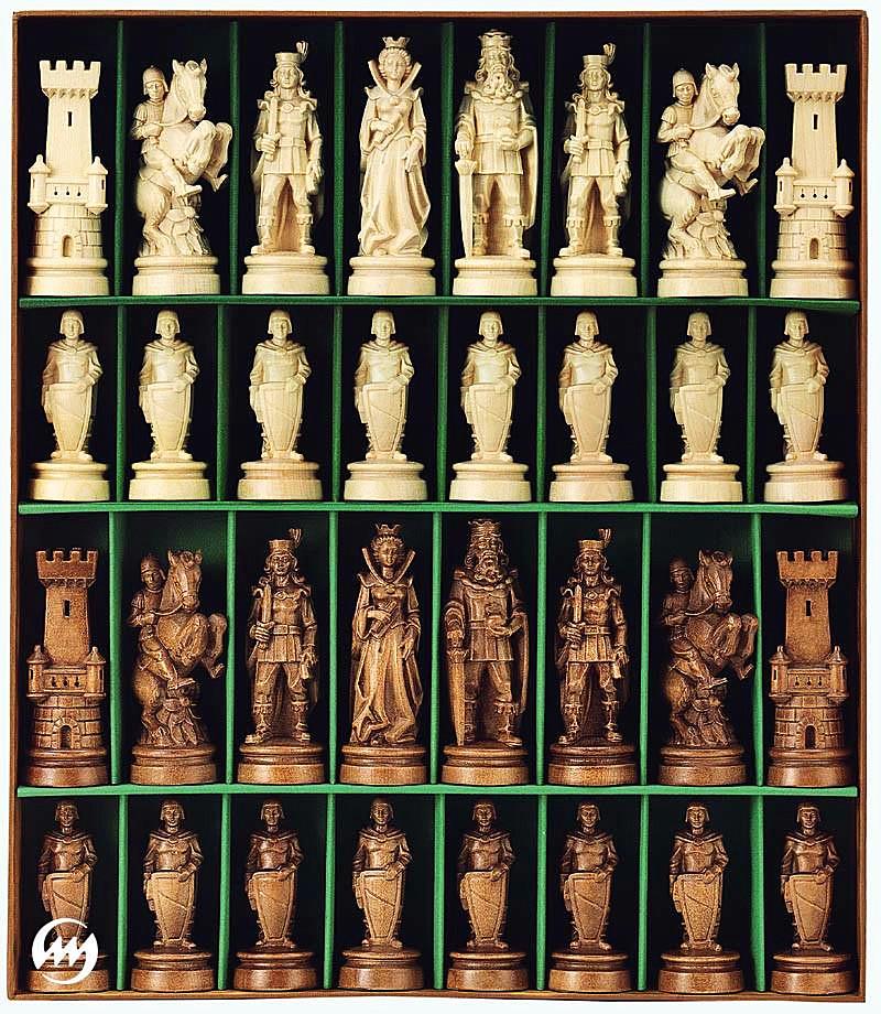 Ein Sammlerset von Schachfiguren, gefertigt von experten Künstlern der Kunstschulen von Ortisei und Selva Gardena.
