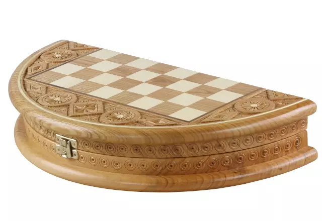 Rubin-Schachspiel – Faltbares Rundschachbrett mit Aufbewahrung aus Obstholz