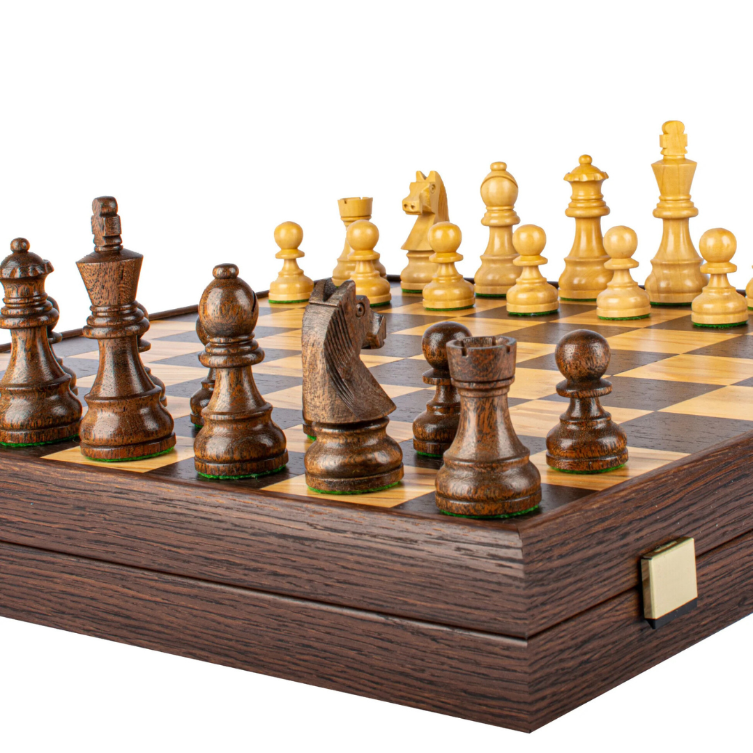 Ein qualitativ hochwertiges Schachspiel-Set in komfortabler Größe, das als schönes Geschenkset dient.