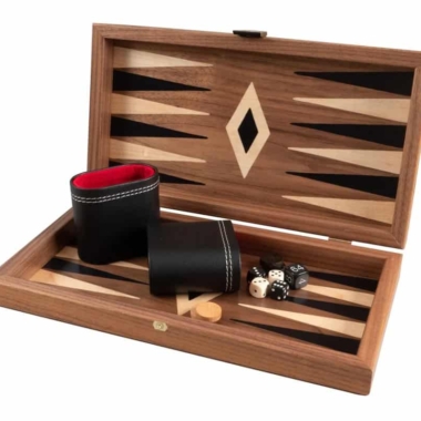 Dieses 3-in-1-Reisespielset vereint drei Spielarten: Schach, Backgammon und Dame in einer kompakten und eleganten Box. Hergestellt aus Nussbaum- und Eichenholz-Marqueterie, ist es eine ideale Geschenkidee für Liebhaber traditioneller Spiele. Es ist in drei Größen erhältlich (siehe Dropdown-Menü).
