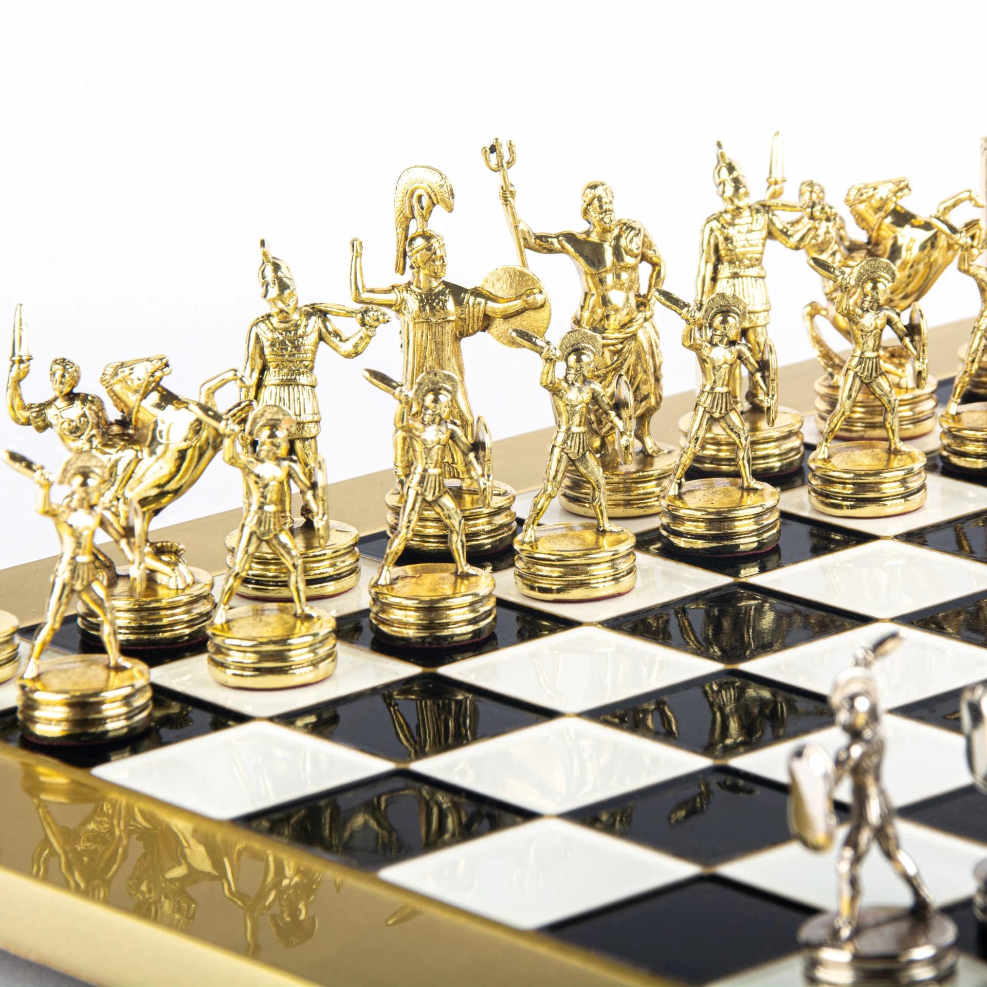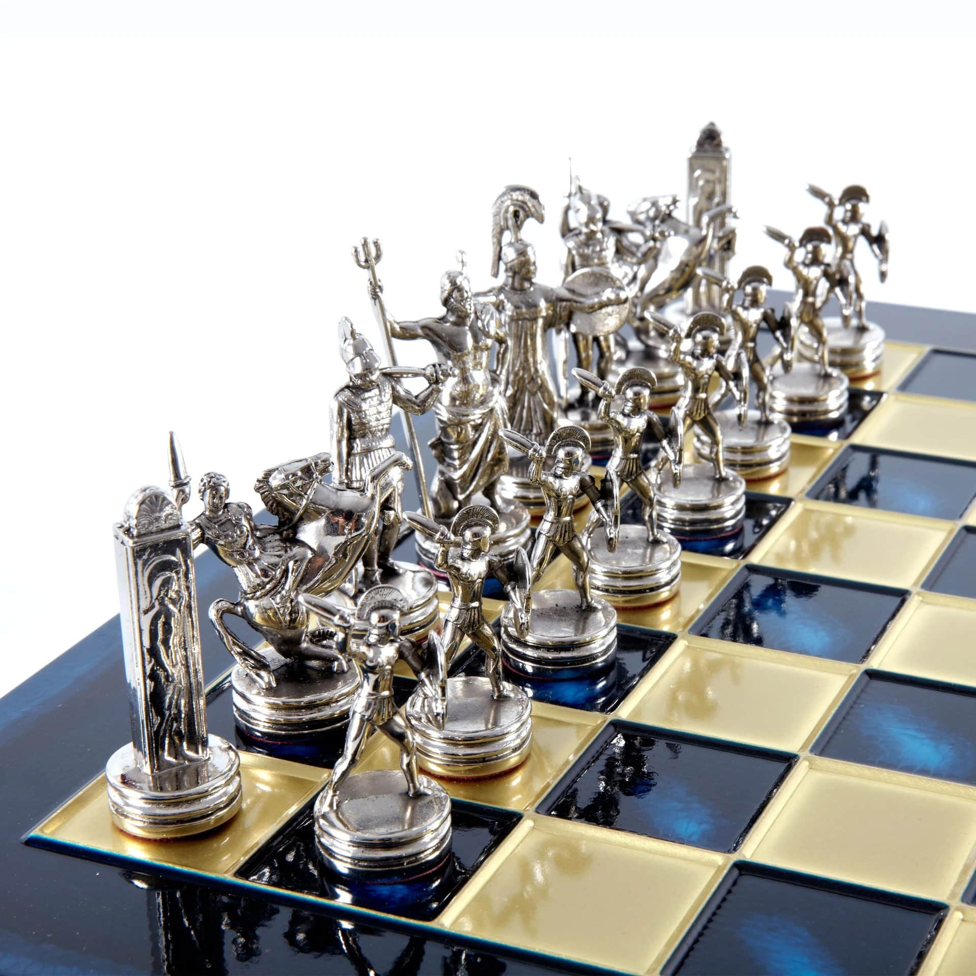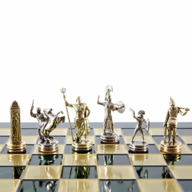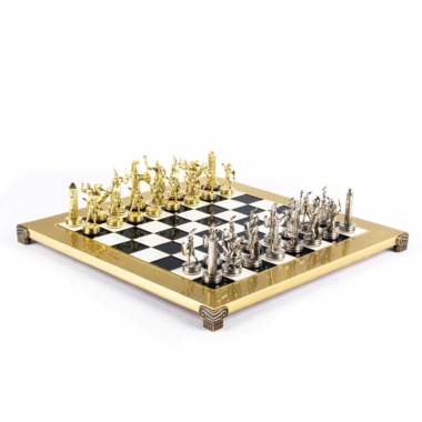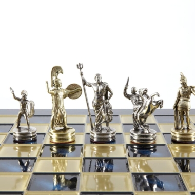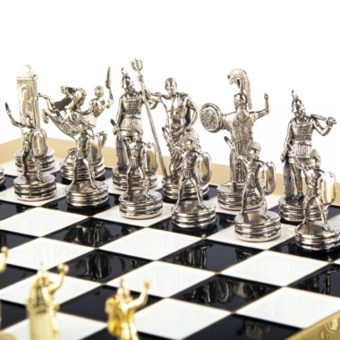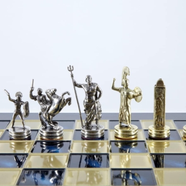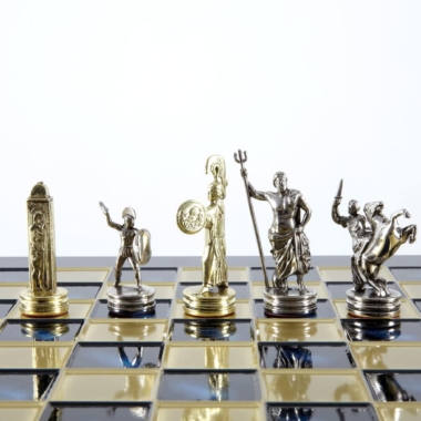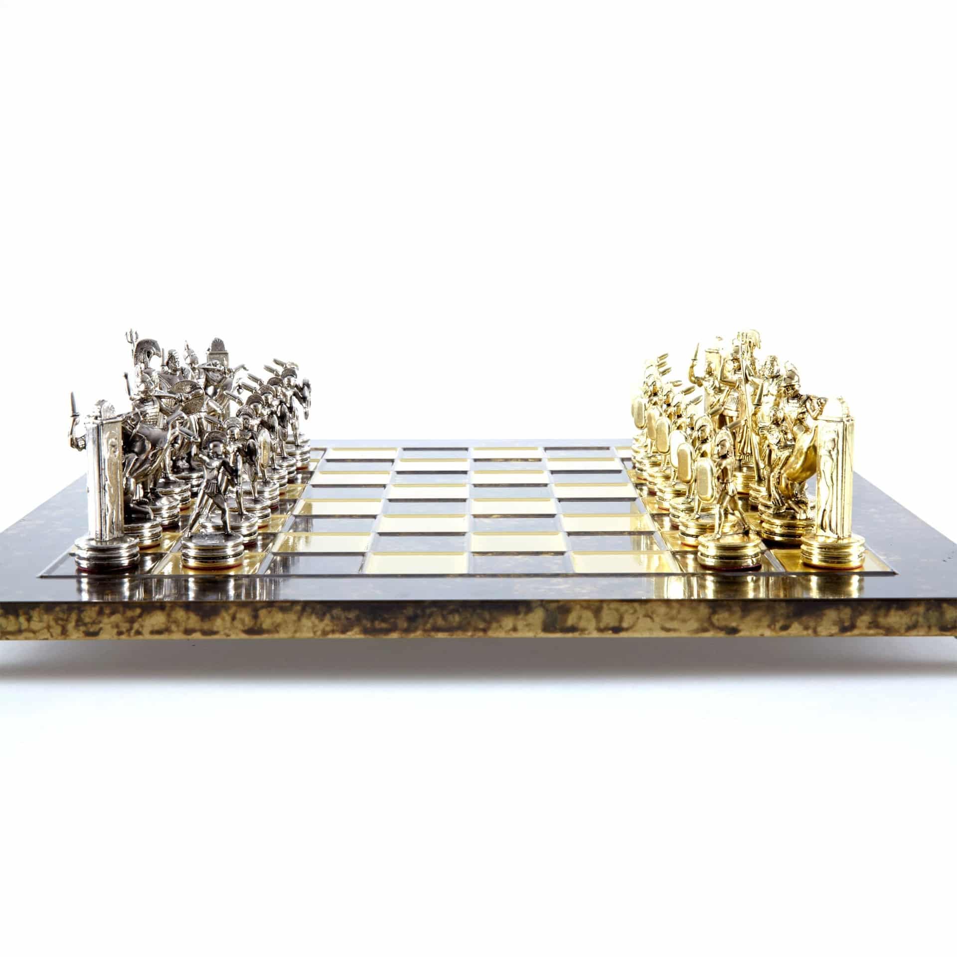 Schachspiel-Set Griechische Mythologie – Figuren Gold & Silber – 36 x 36 cm
