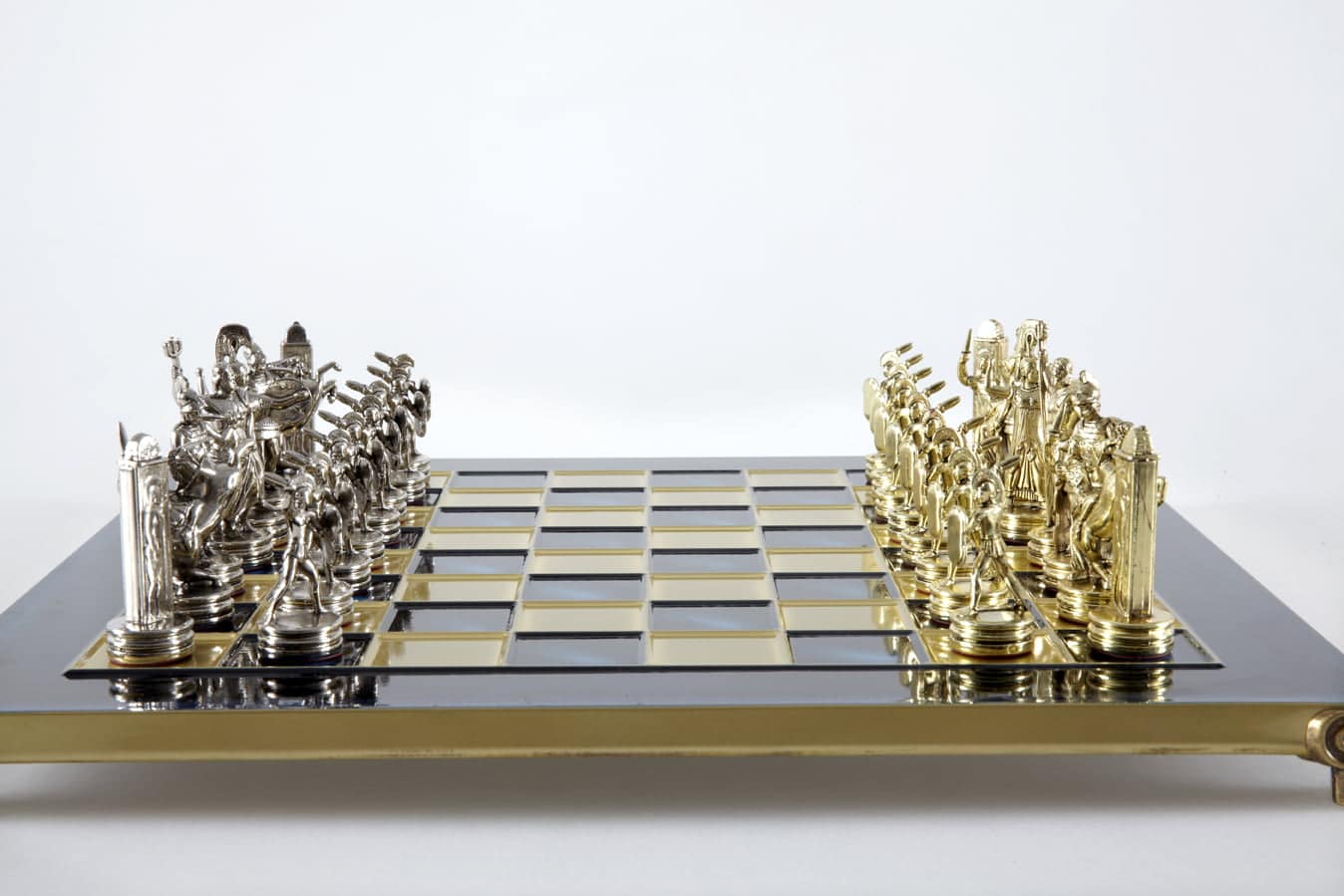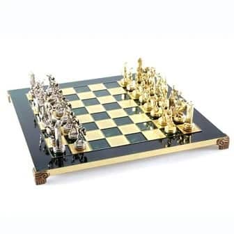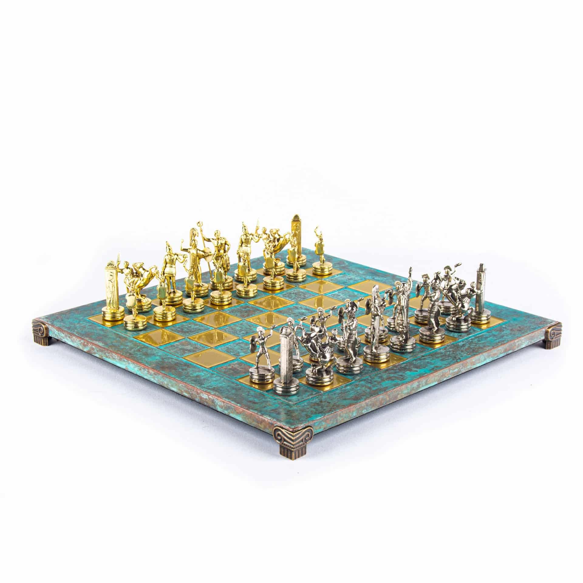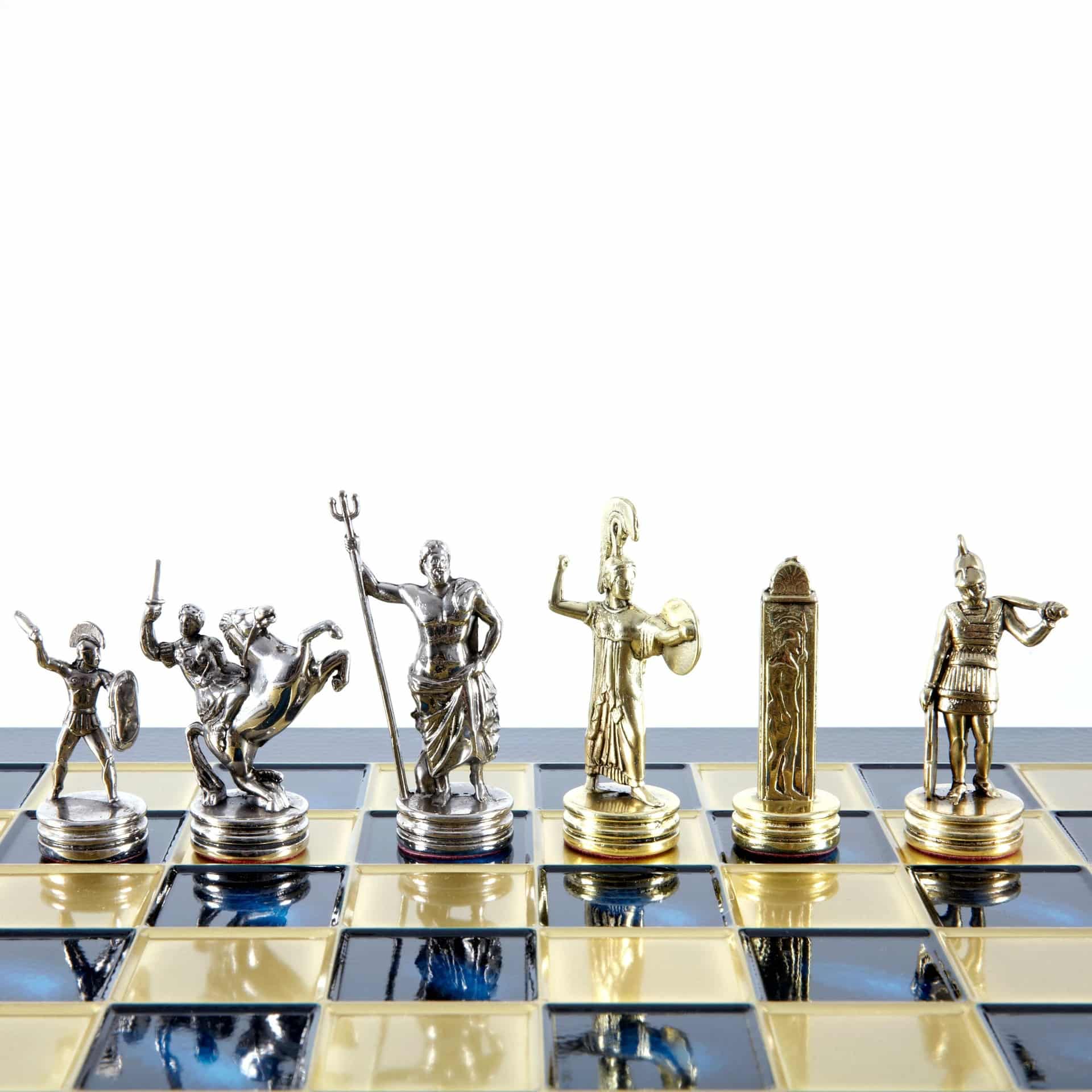 Schachspiel-Set Griechische Mythologie – Figuren Gold & Silber – 36 x 36 cm