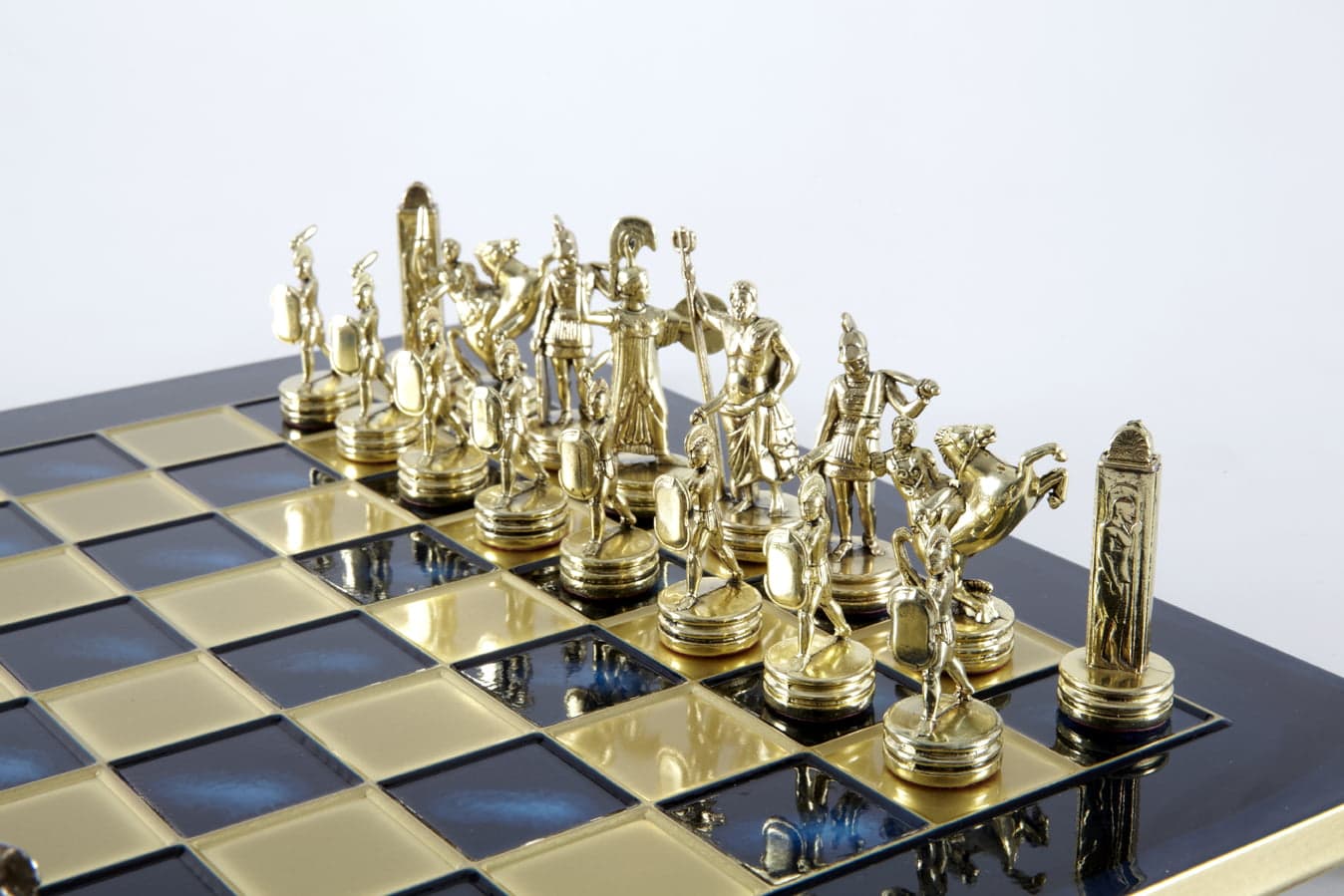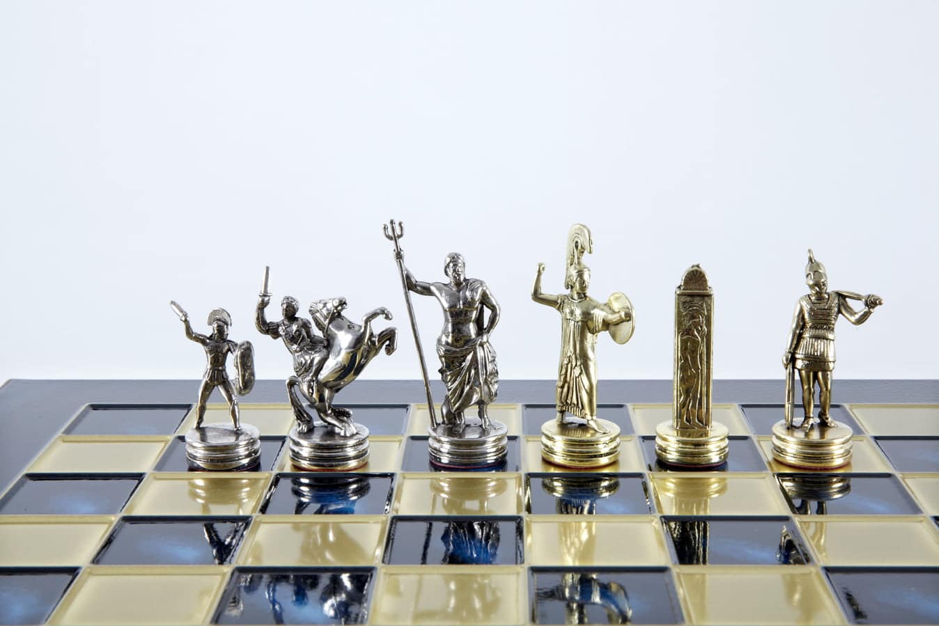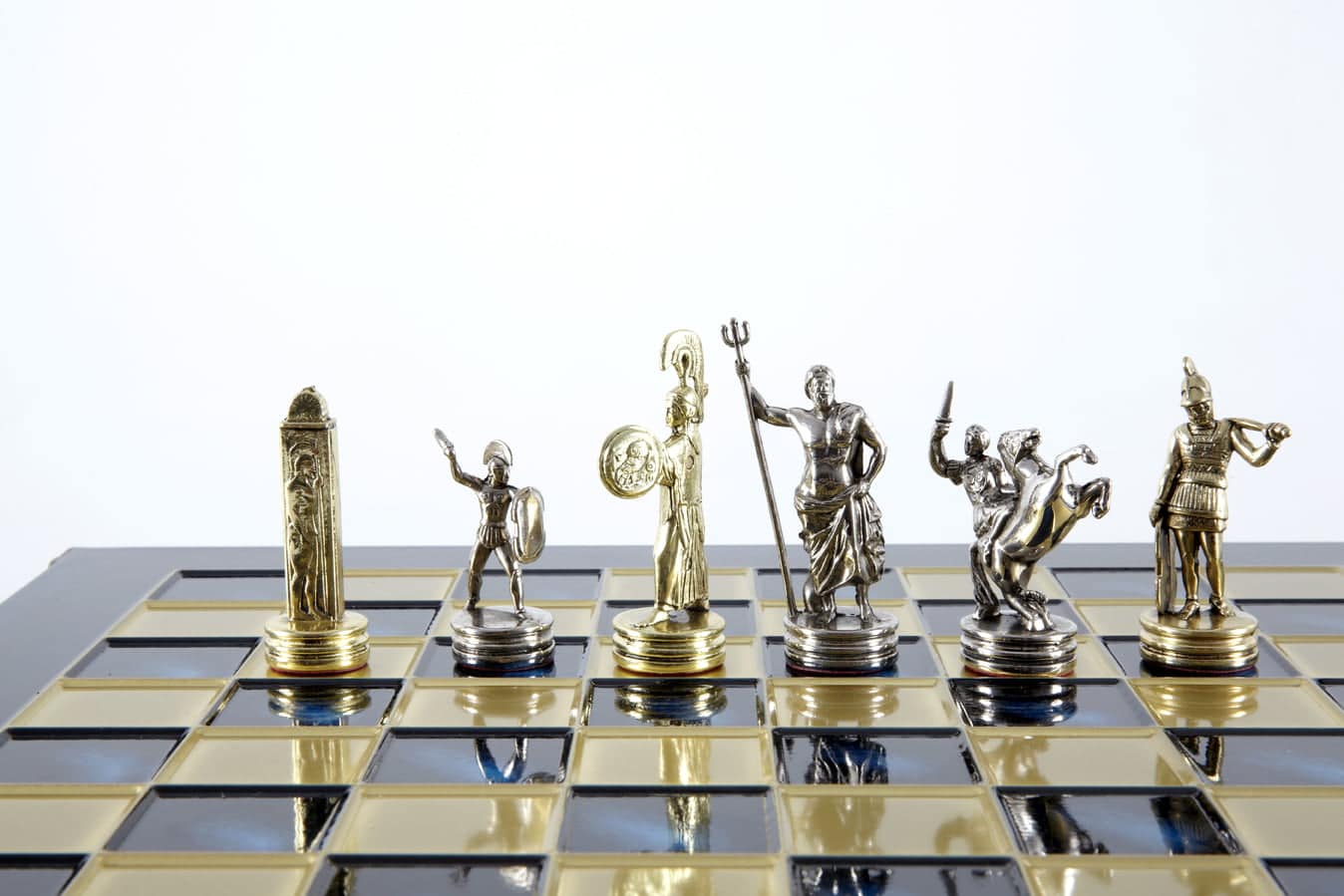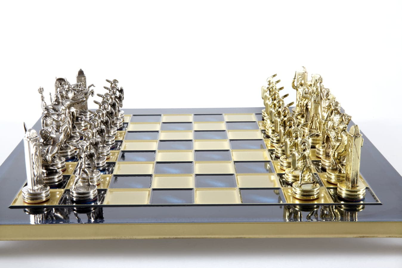 Schachspiel-Set Griechische Mythologie – Figuren Gold & Silber – 36 x 36 cm