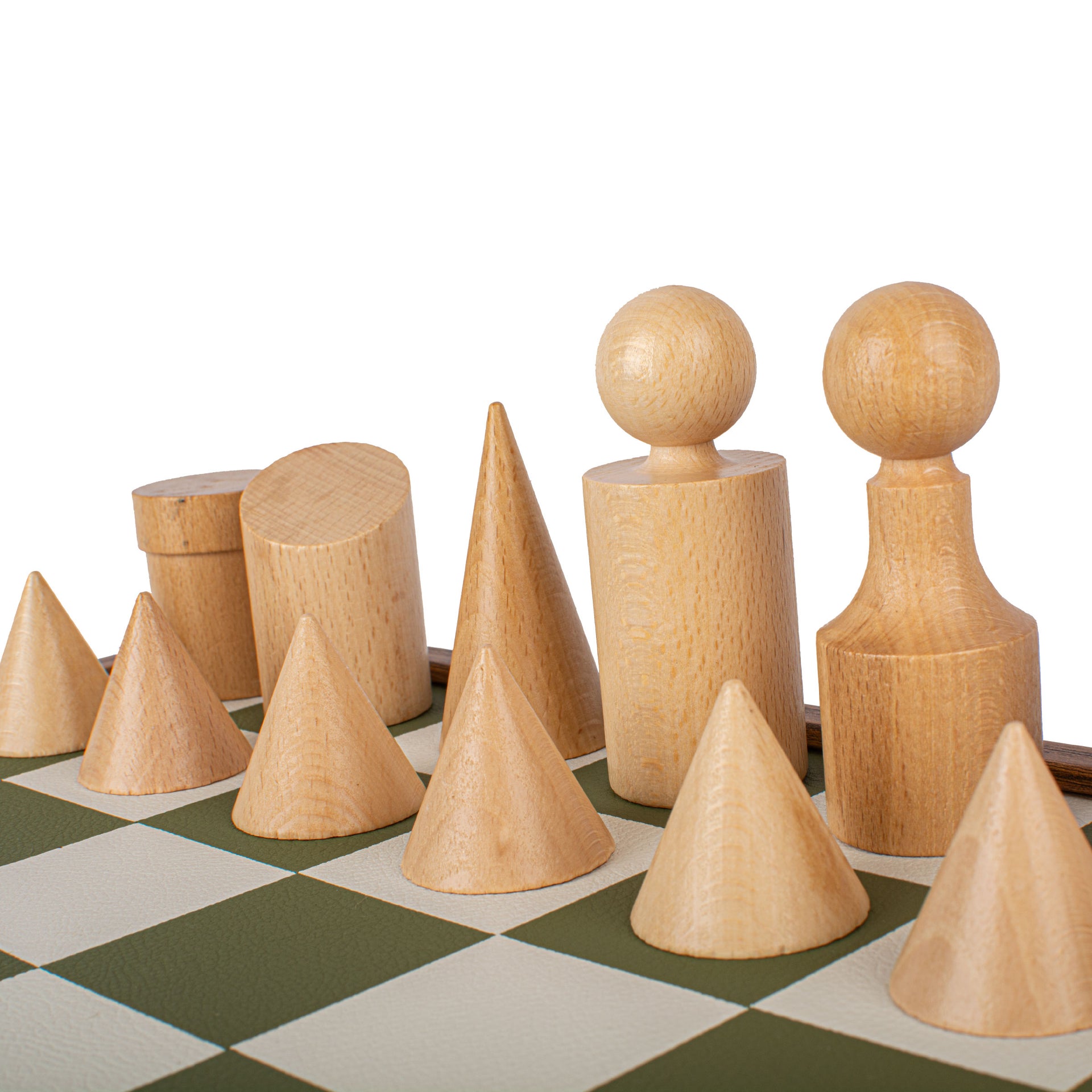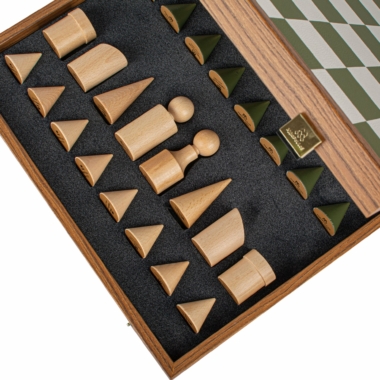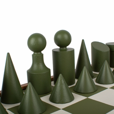 Schachspiel-Set im Bauhaus-Stil – Grün & Weiß – 40 x 40 cm