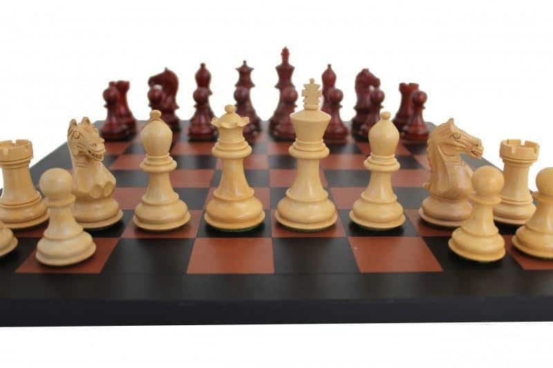Staunton Schachspiel aus Rosenholz & Echtholz Schachbrett