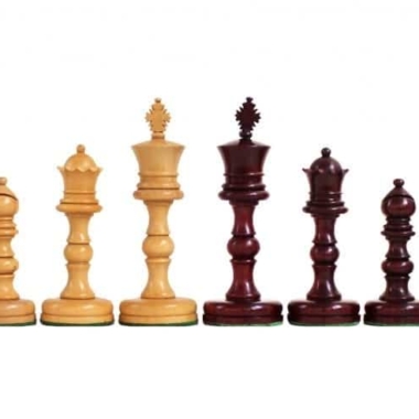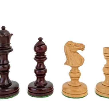 Die Schachfiguren mit einer Könighöhe von 10,5 cm aus dunklem Rosenholz sind handgeschnitzt und poliert.