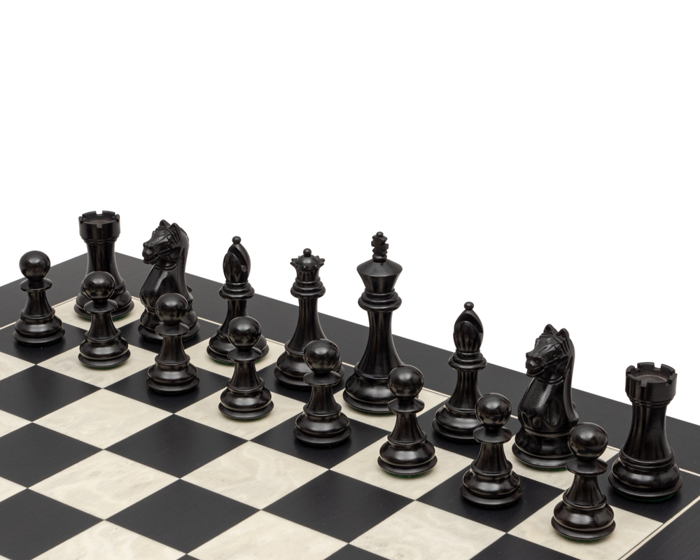Schwarz-Weiß Schachset: Ebonisierte Buchsbaum Schachfiguren und Ahornholz Schachbrett