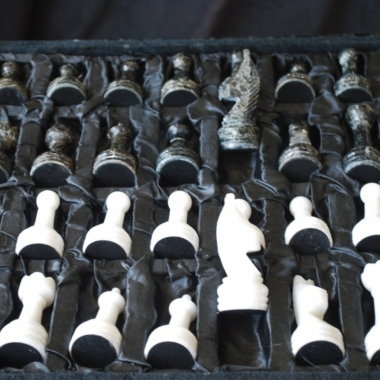 Ein Schachspiel-Set in kleiner Größe und schöner Gestaltung im modernen Stil.