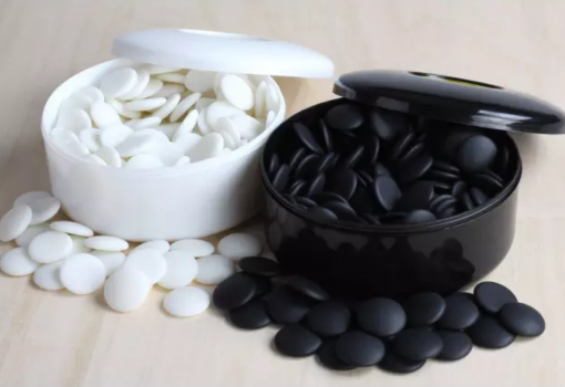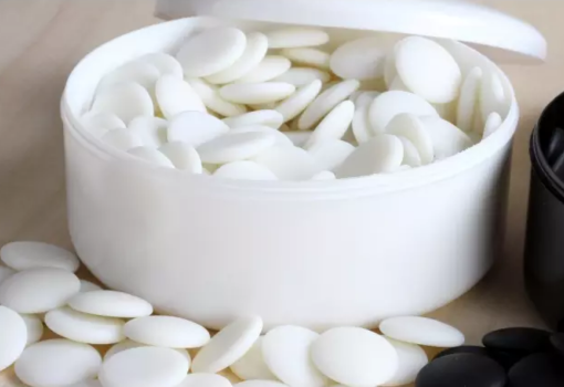 Set aus Harzsteinen für das Go-Spiel , hergestellt aus hochwertigem Harz. Sie haben einen Durchmesser von 2,3 cm und eine Dicke von 5 mm. Diese Abmessungen ermöglichen eine einfache Handhabung und bewahren gleichzeitig die notwendige Widerstandsfähigkeit für langlebige und intensive Go-Partien.