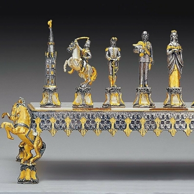 Oberfläche : 24 Karat Gold. Die Füße des Schachbretts sind in Form von aufgerichteten Pferden skulpturiert.