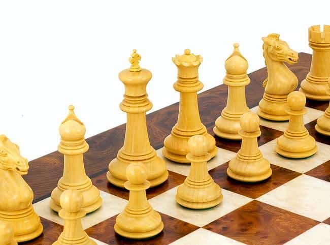 Dieses schöne Design bietet mehr Details als das Standard-Staunton-Design mit einer leichten byzantinischen Anmutung.