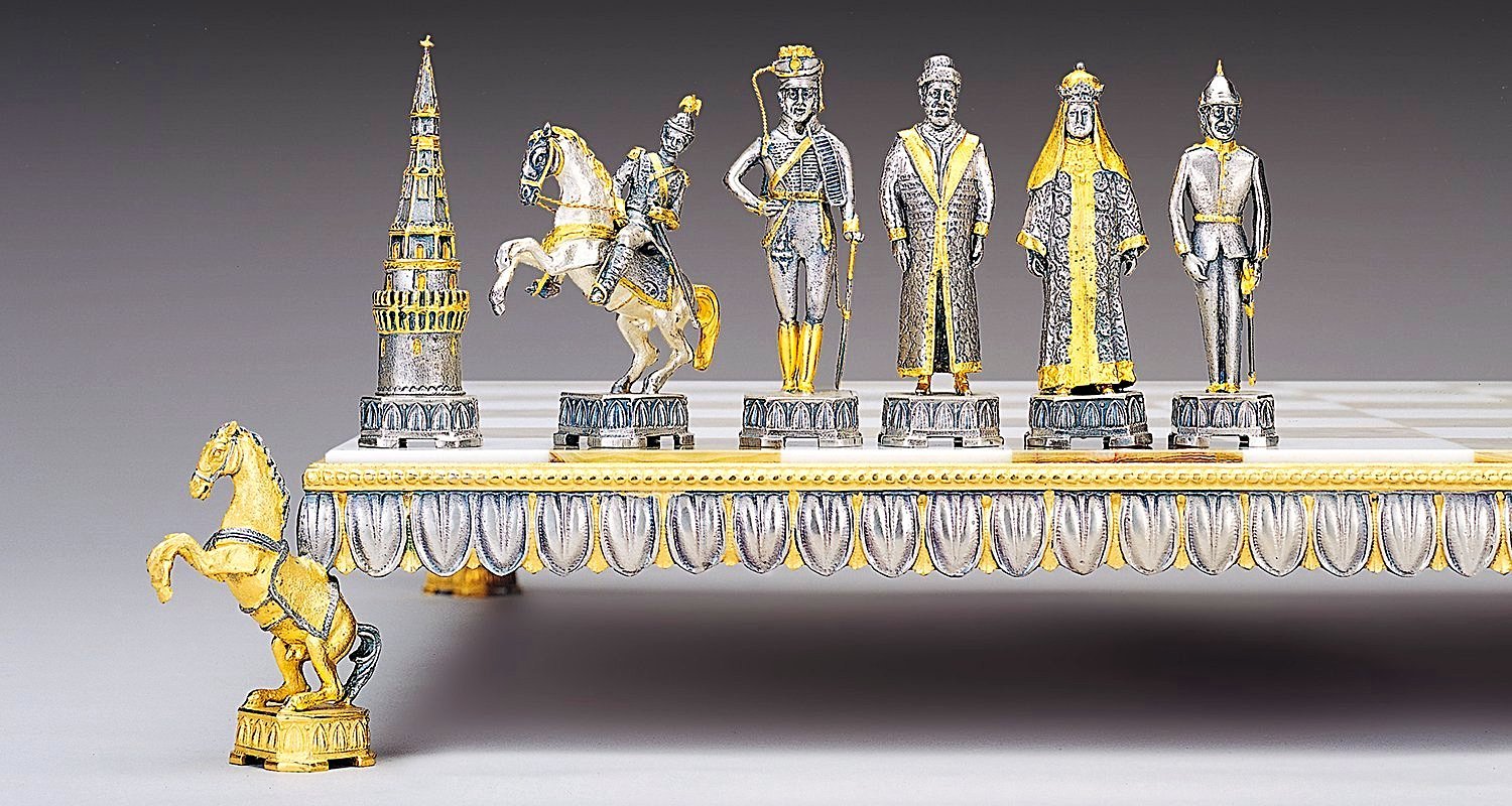 Oberfläche : 24 Karat Gold. Die Füße des Schachbretts sind in Form von alten Kanonen skulptiert.