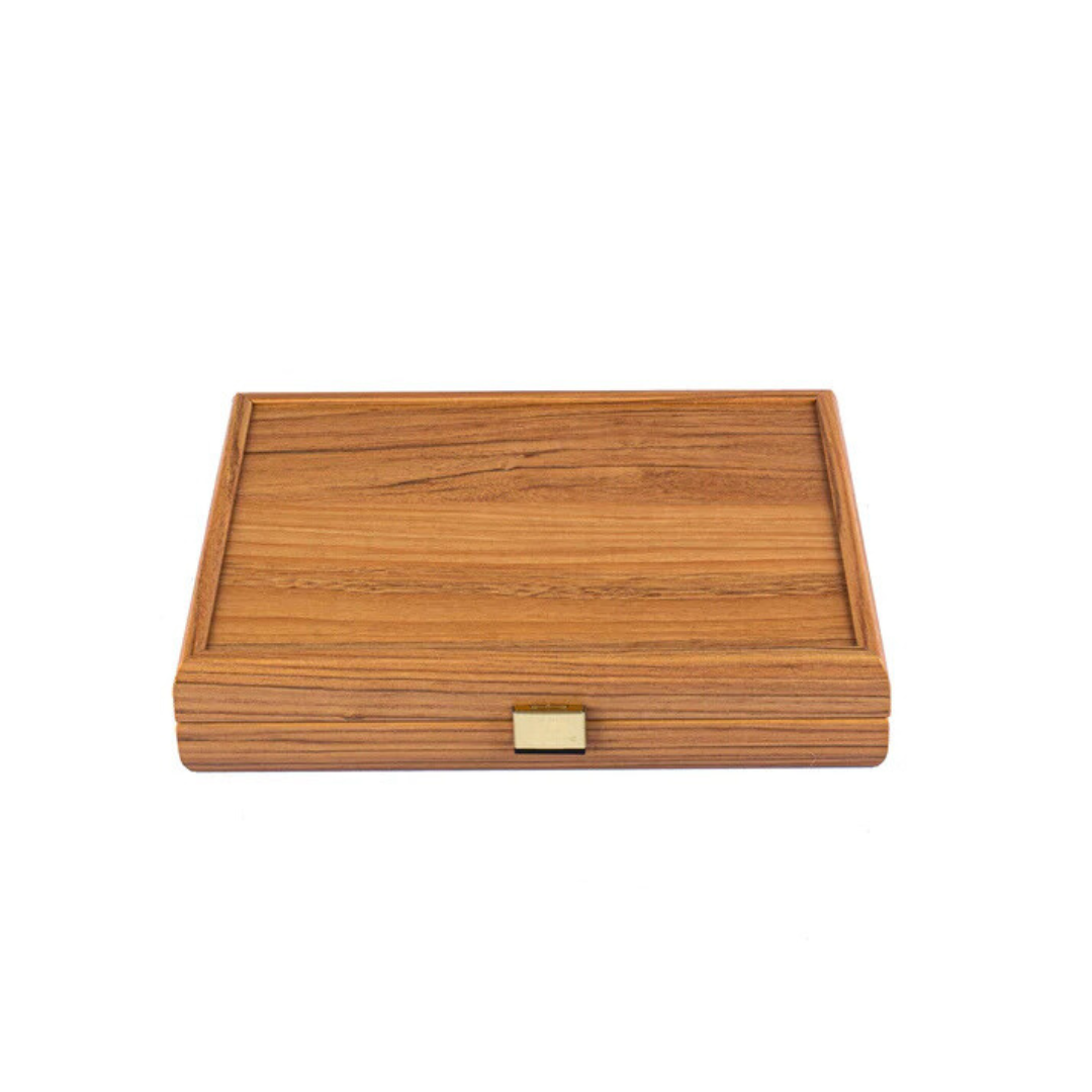 Verleihen Sie Ihren Spielabenden mit unserem Holzkasten in Nussbaum-Optik einen Hauch von Eleganz, der zwei Spiele aus Kunststoff enthält.
