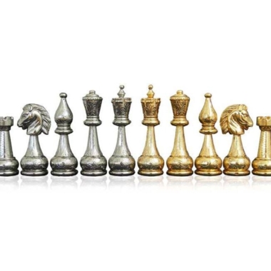 Ein komplettes Schachspielset, bestehend aus Schachfiguren, die vollständig handgefertigt sind und mit Gold- und Silberbeschichtung versehen sind.