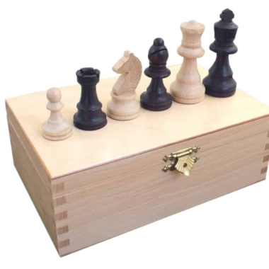 Die handgefertigten Holzschachfiguren haben eine Könighöhe von 7,5 cm.