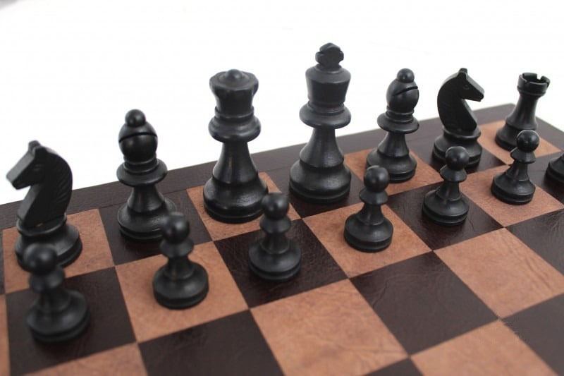 Staunton Schachspiel aus Holz und echtes italienisches Leder-Schachbrett mit Aufbewahrungskoffer