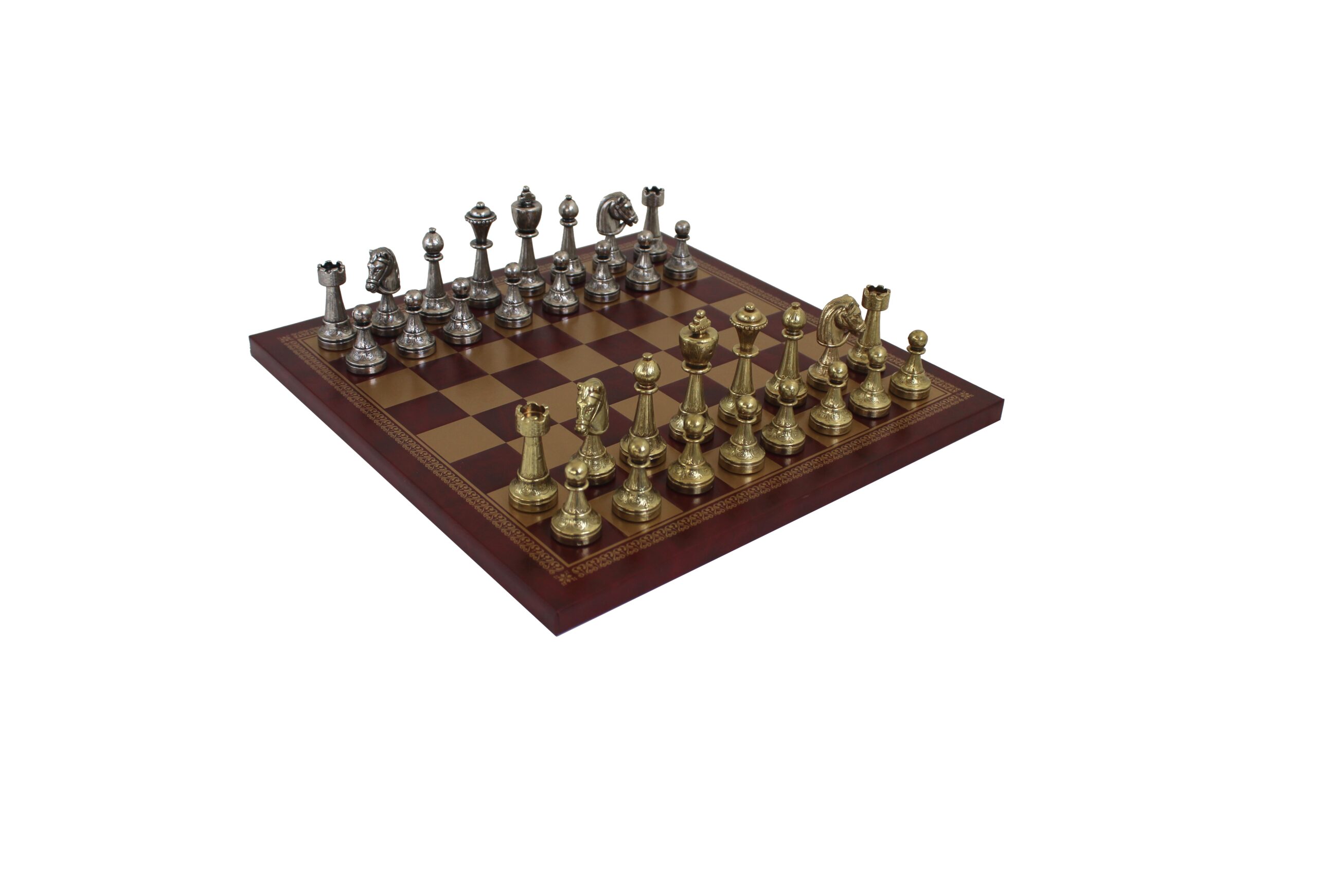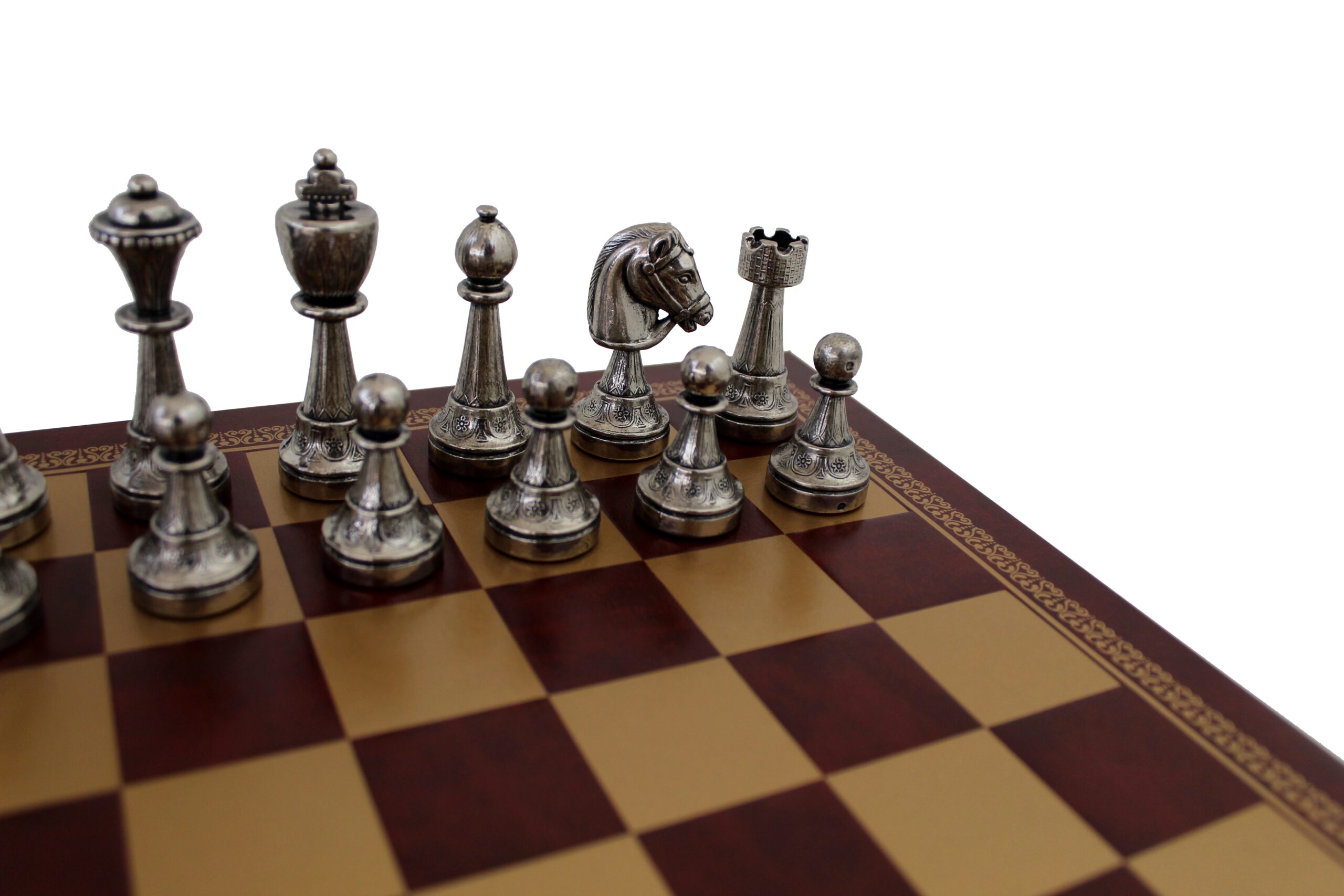Die Schachfiguren aus Metall sind vom Staunton-Stil inspiriert, vollständig von Hand geschnitzt und poliert, sie sind gut gewichtet für echten Spielspaß. Sie haben eine klassische Königshöhe von 7,5 cm.