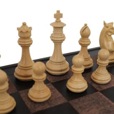 Das Schachspiel ist handgeschnitzt und poliert aus Rosenholz. Im Staunton-Stil hat es eine Könighöhe von 8,5 cm und ist sehr gut gewichtet.