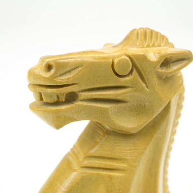 Das Schachbrett wird von sehr schönen handgeschnitzten Schachfiguren aus Rosenholz begleitet, mit einer Könighöhe von 7,6 cm. Sie sind doppelt gewichtet und haben einen schwarzen Schutzfilz unter ihrer Basis.