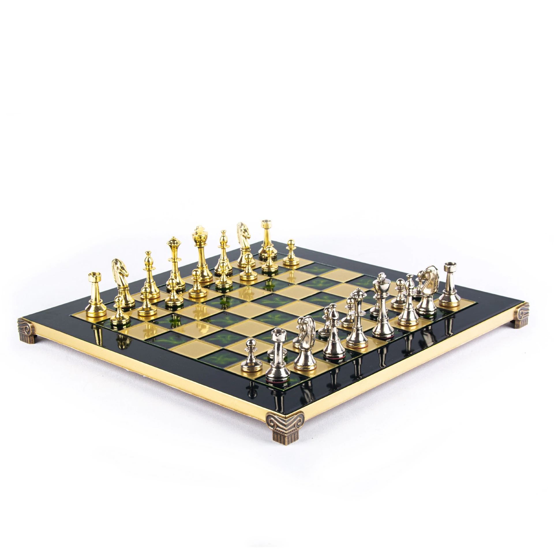 Entdecken Sie die zeitlose Eleganz dieses Staunton Schachspiels aus Metall, perfekt für Strategiefans und Sammler.