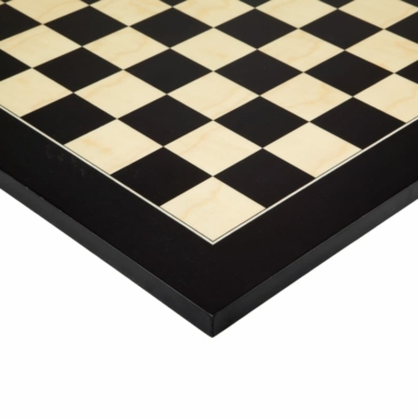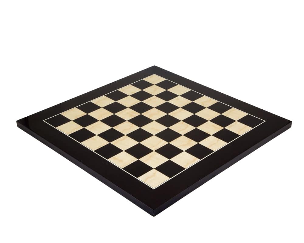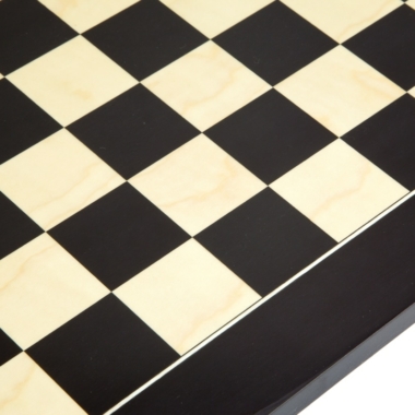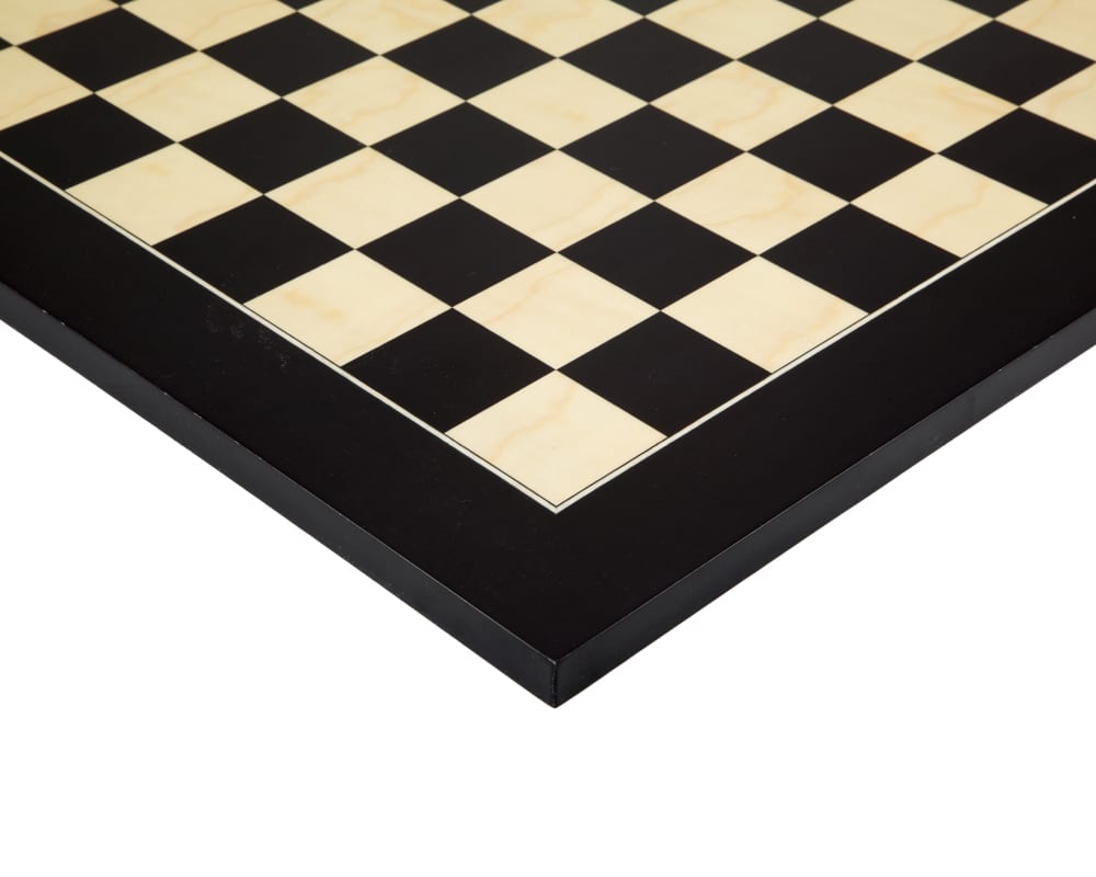 Das Schachbrett von 45 x 45 cm ist aus schwarzem Anigre und Ahorn gefertigt.