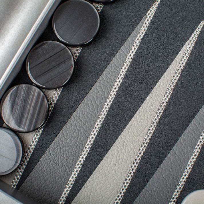 Heben Sie Ihre Backgammon-Spiele auf ein neues Niveau mit diesem Backgammon-Set, das für diejenigen entworfen wurde, die die zeitgenössische Ästhetik und hochwertige Materialien schätzen.