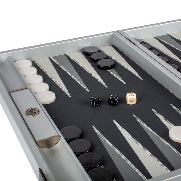 Zeitgenössisches Silbernes Backgammon-Set